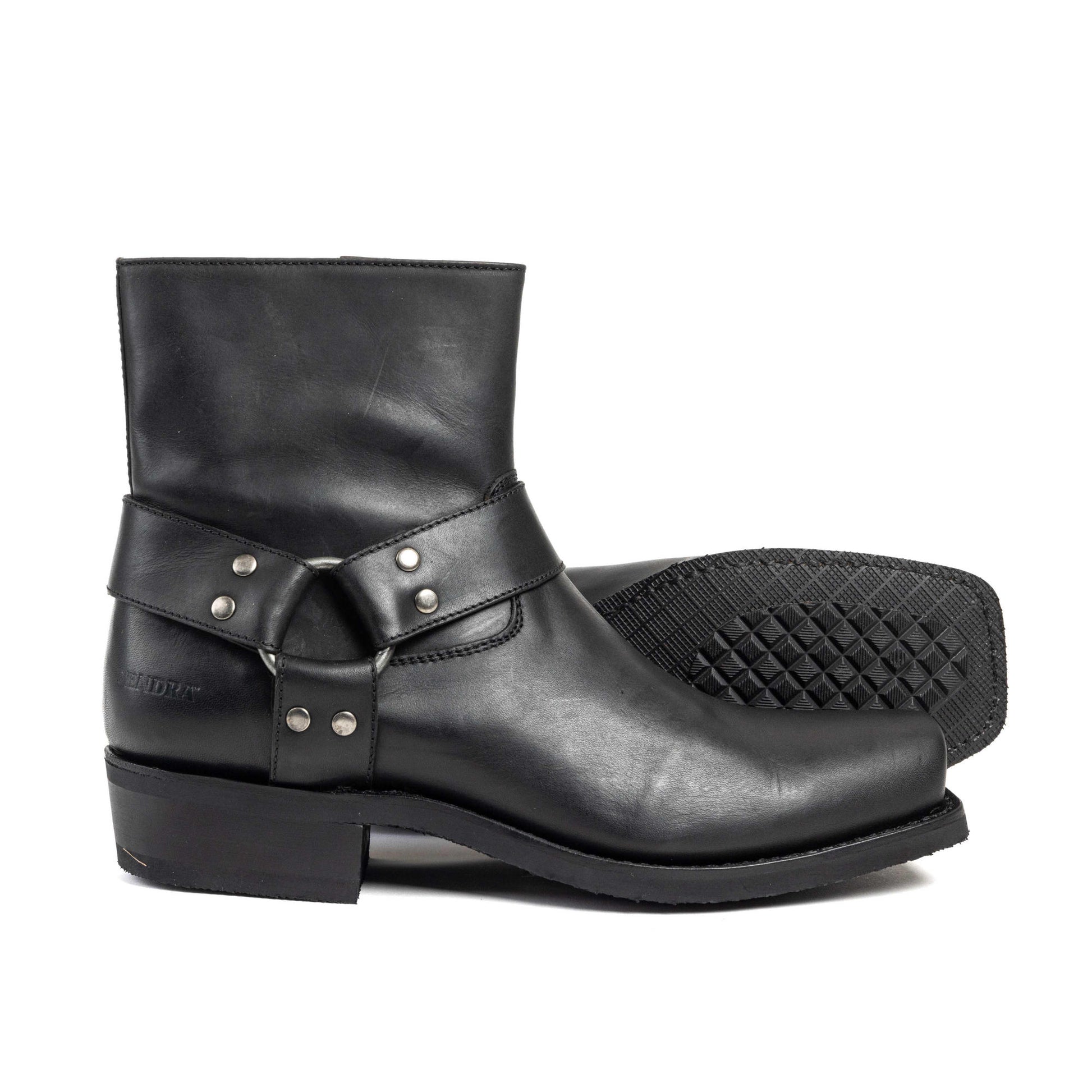 Crafted from 100% premium cowhide leather, the Evolution Negro features a smooth, polished finish that adds a touch of sophistication to its rugged biker aesthetic. The inner lining and insole are made entirely of leather for breathability and all-day comfort. Thanks to the Goodyear welted sole construction, this boot offers durability, long-lasting wear, and easy resoling when needed.