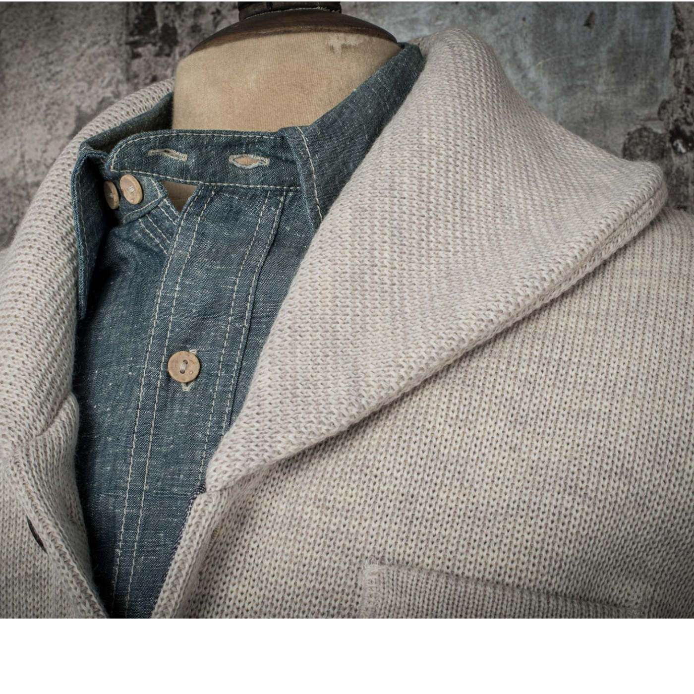 A true piece of French workwear heritage, the Enfant du Malheur cardigan from Fleurs de Bagne is knitted in Roanne from 100% pure wool. Built in an ultra-dense 5-gauge structure, it delivers exceptional warmth, durability, and a timeless aesthetic rooted in military and maritime traditions. Vintage chambray cotton reinforcements and natural corozo buttons underline its uncompromising craftsmanship.
