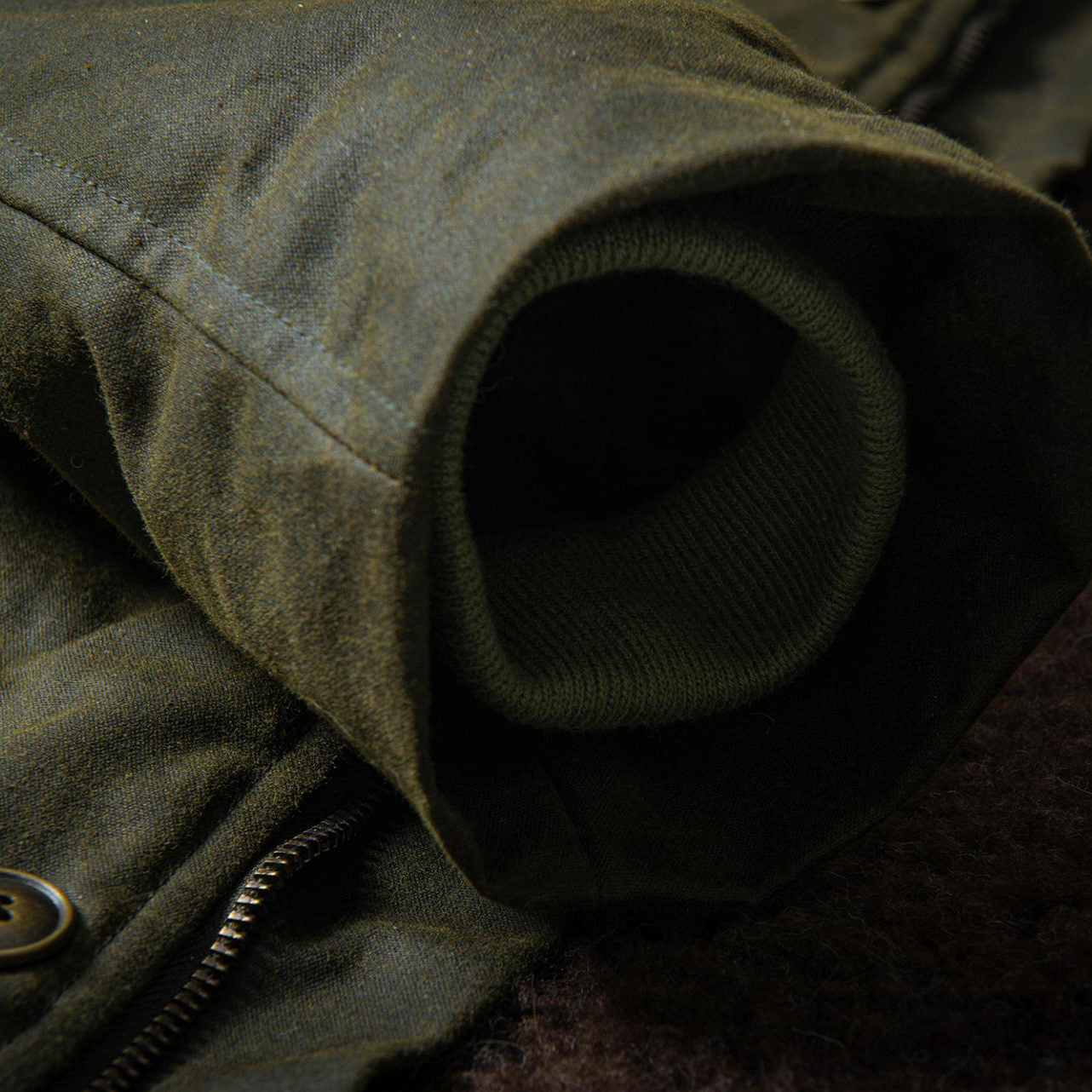 - Fabric: British Millerain Techwax water-repellent canvas