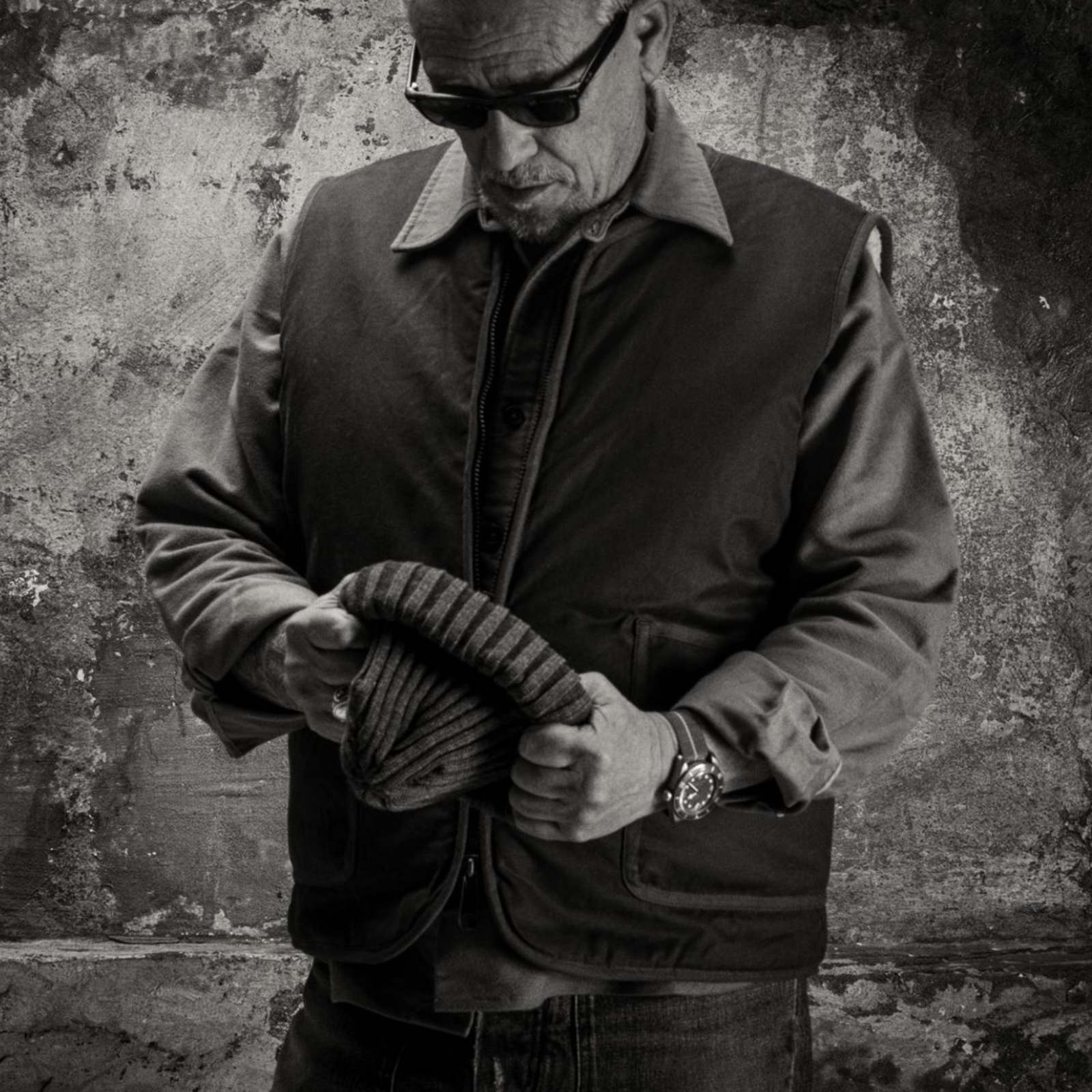 This waistcoat is a variation on the sleeveless DISCIPLINE jacket. A heavy duty canvas waxed waistcoat fully lined with sheepwool. Very light and comfortable.