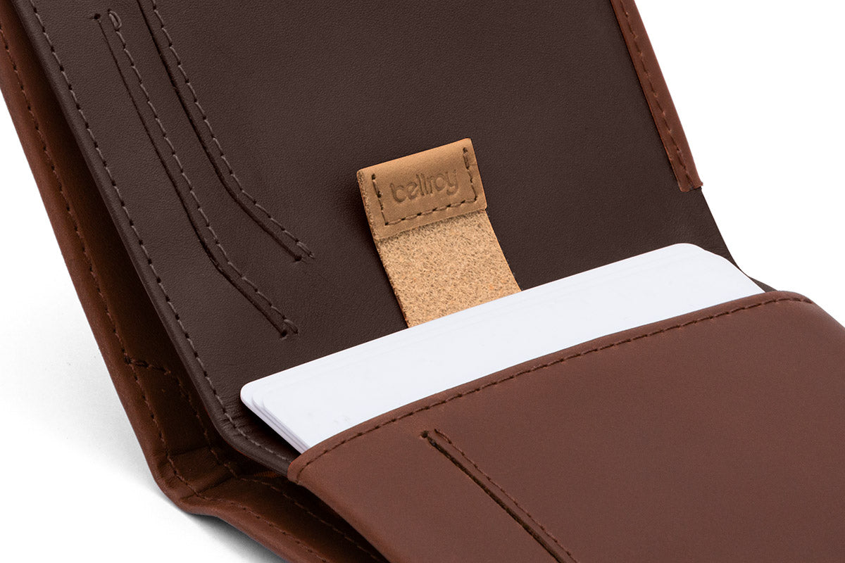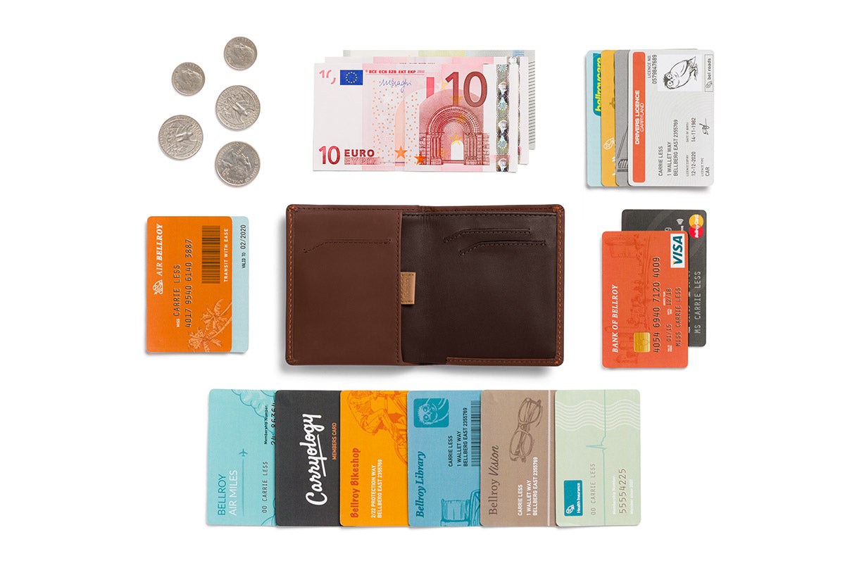 Cash can be stored unfolded, your most frequently used cards are stored in the quick access compartments, and the remaining, less frequently used cards are stacked in the compartment with the practical pull-tab.
