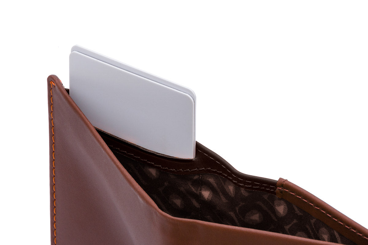 A traditional design with a surprising amount of space. The Note Sleeve stores cards, bills and coins in a sleek, professional wallet.