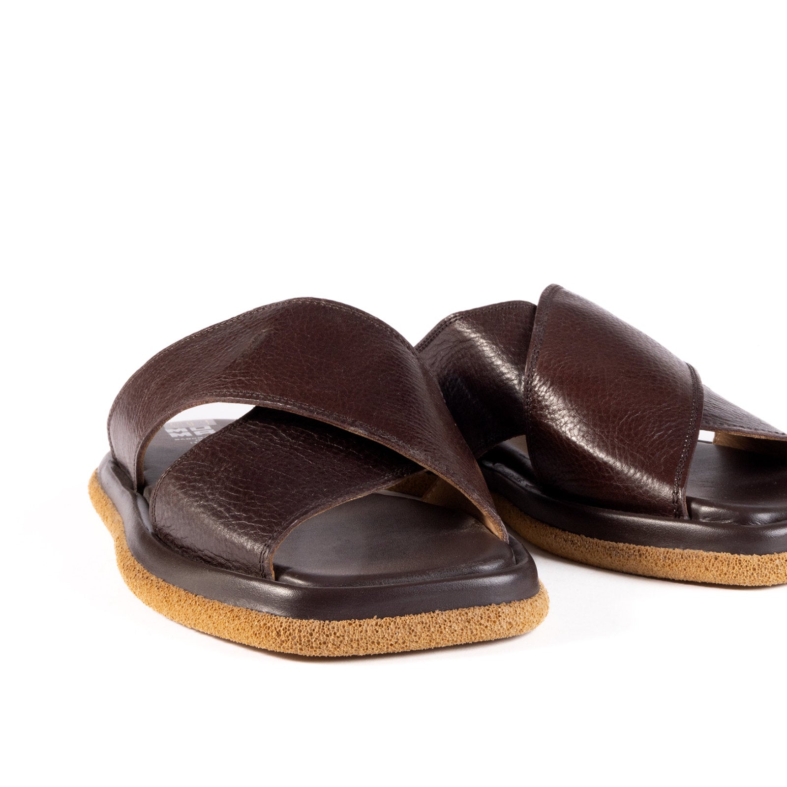 The Sandalo AR Lux by MOMA is a refined leather sandal crafted in Italy for everyday elegance and comfort. With its wide, crisscrossed straps in deep “Caffè” brown leather and a naturally cushioned crepe sole, this sandal blends artisanal tradition with modern simplicity. Perfect for warm days, city strolls, or relaxed summer looks, it’s a laid-back yet elevated choice for those who value detail and durability.