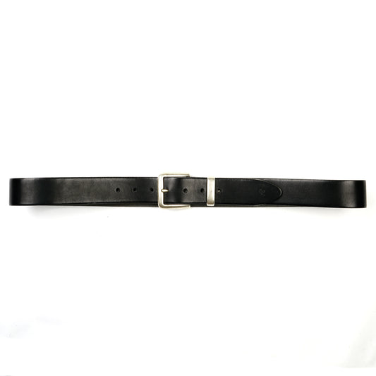 Collin Silver Brass Buckle Curved Leather - Black - 4cm