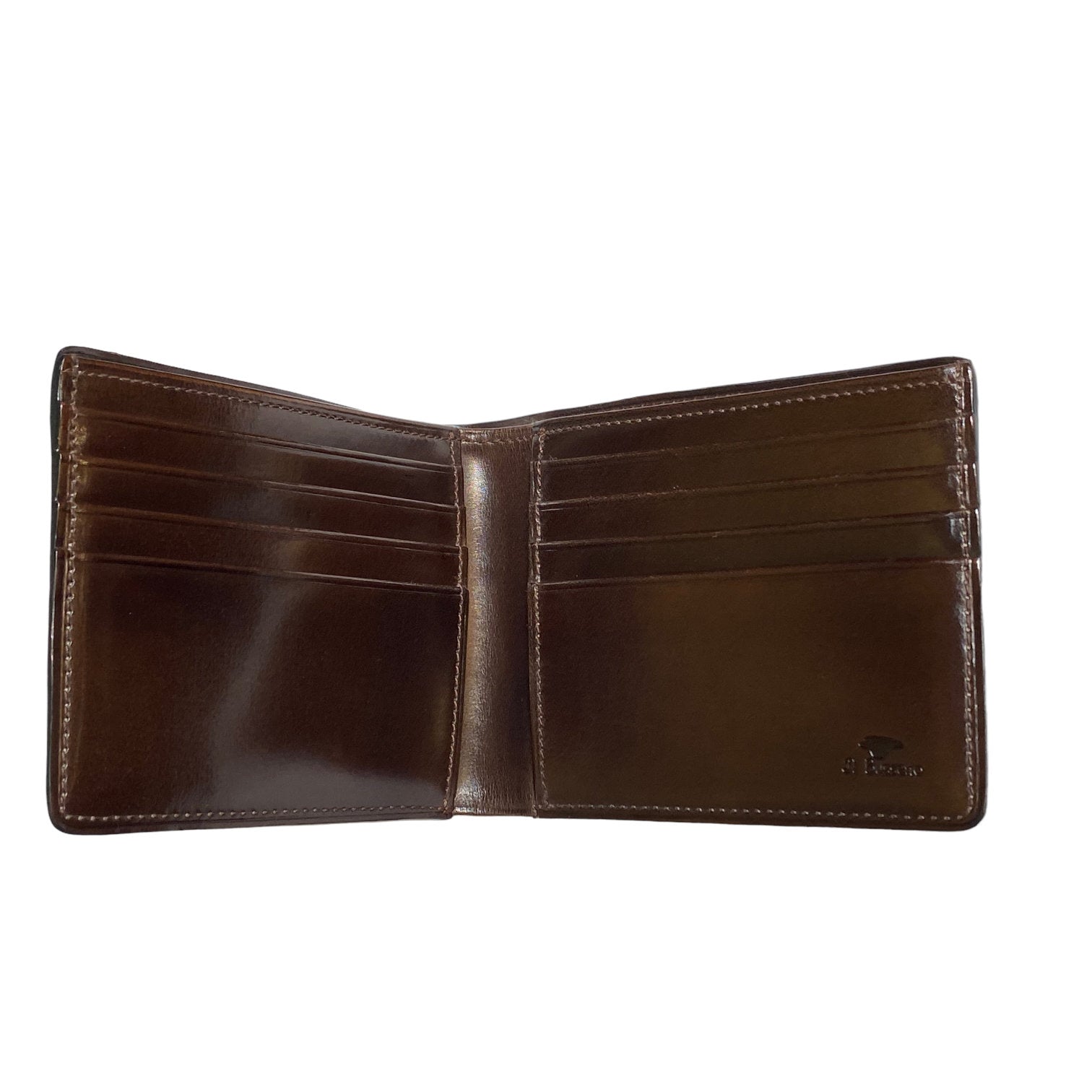 Die Standard-Bifold-Geldbörse von Il Bussetto. Diese zweifach faltbare Geldbörse ist aus pflanzlich gegerbtem "Cuoio"-Leder gefertigt. Außen und innen haben die gleiche Farbe und sind handbemalt.