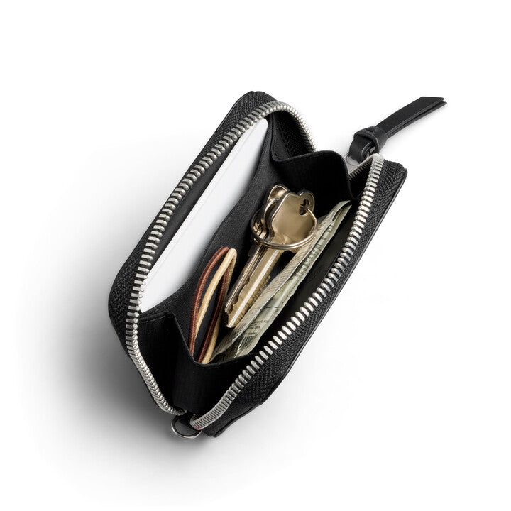 Unerwarteter Stauraum in einer Mini-Geldbörse, mit Platz für Karten, Münzen, Schlüssel und andere kleine Gegenstände.